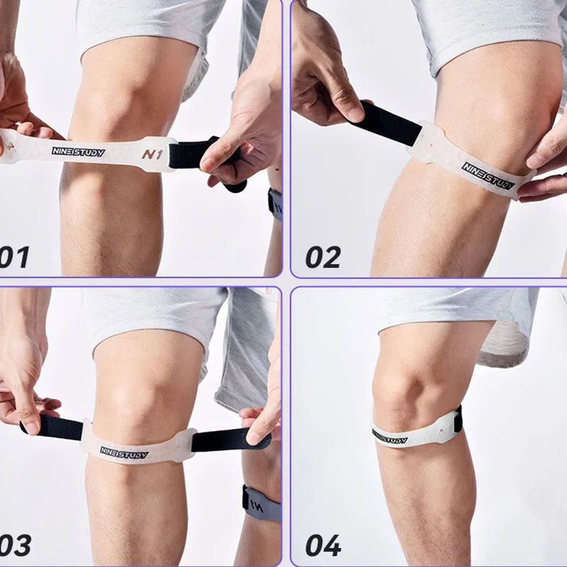 Le strap genoux rotulien réglable en silicone avec sangle de compression apporte un soutien ciblé du tendon rotulien pour améliorer la stabilité du genou lors des activités sportives ou quotidiennes.